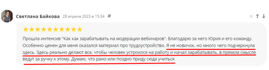 Например, зарабатывать 25,000 рублей как Оля, которая после модерации вебинаров стала специалистом службы поддержки в большой онлайн-школе