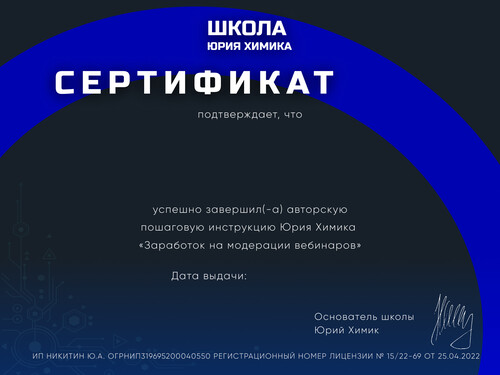 После прохождения инструкции вы получите именной сертификат от школы с образовательной лицензией